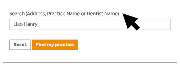 Scroll down to the ‘Search’ section. They can enter address, practice or dentist name to find their practice/s.