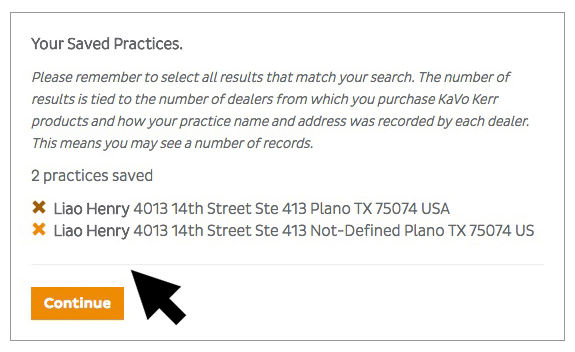 They should check the box next to all of the results that match their practice. Remember – their practice will be listed multiple times if they purchase products from multiple dealers. They should check all applicable records.
